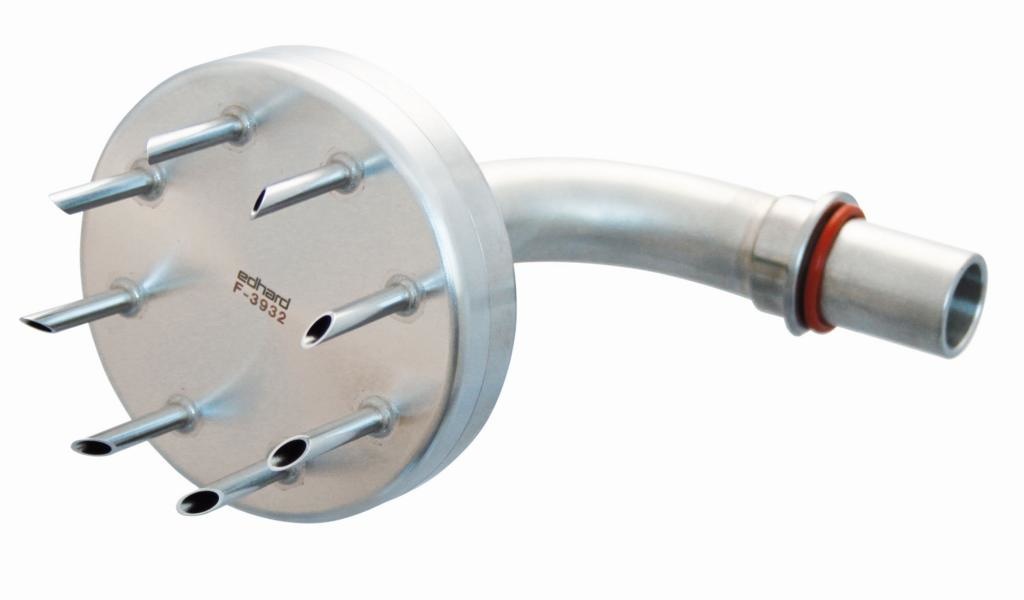 - Edhard Gebäckfüllmaschine inkl. 1 Trichter (5,5 Liter Einfachauslaß), Adapter Bogenstück und Donut-Tülle (aus Edelstahl, Ø 88 mm, 8 Düsen à Düsenlänge 30 mm Ø ca. 60-70 mm)