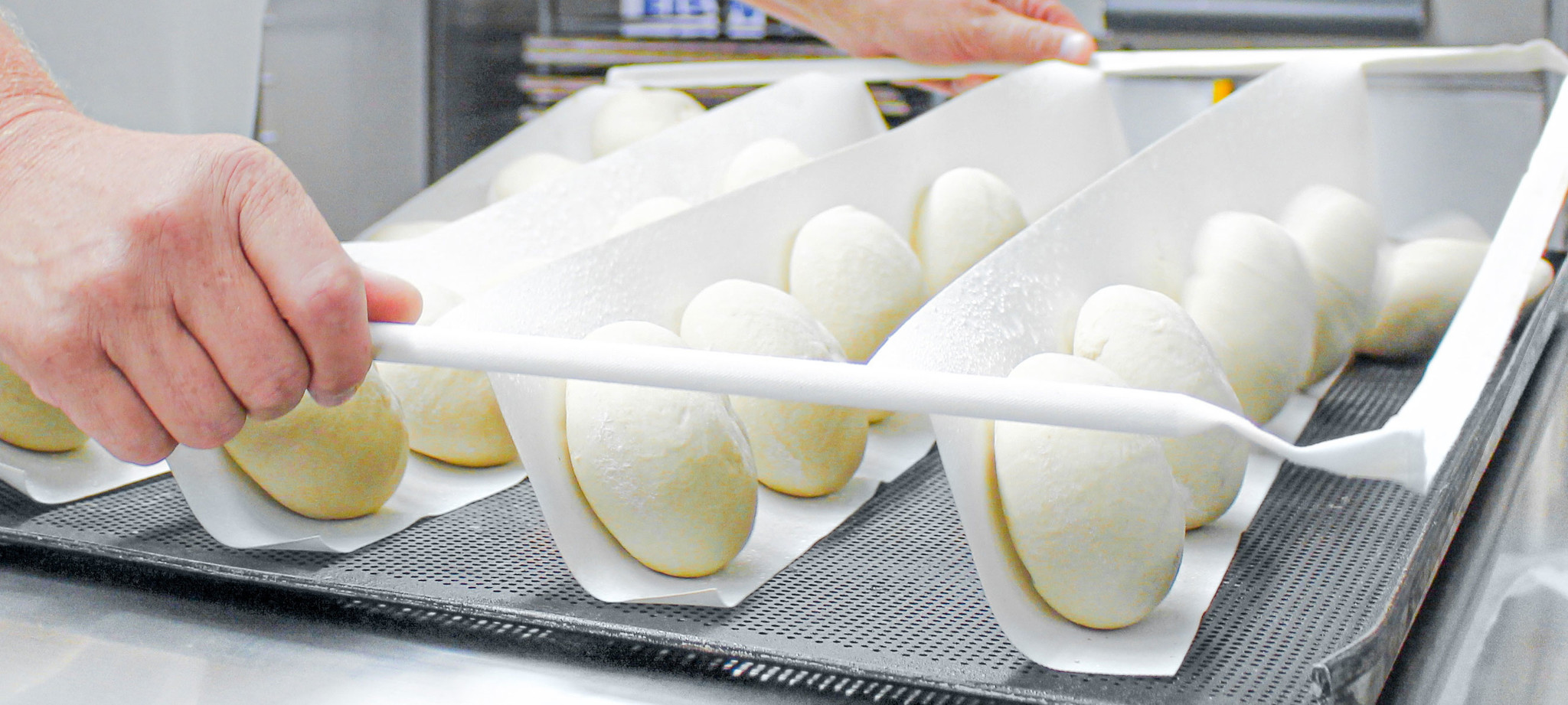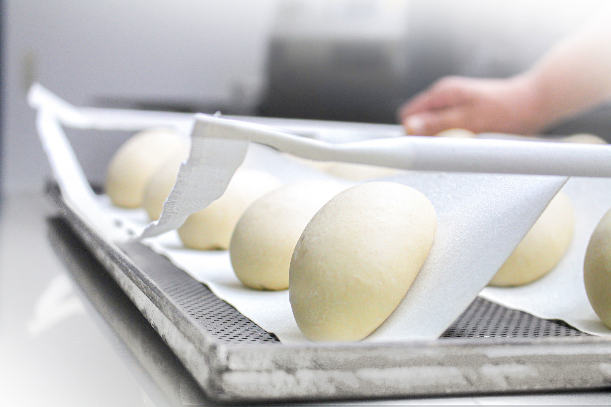 1. Easyspin-Tuch auf das Blech legen und Teiglinge vor dem Gären drauf verteilen