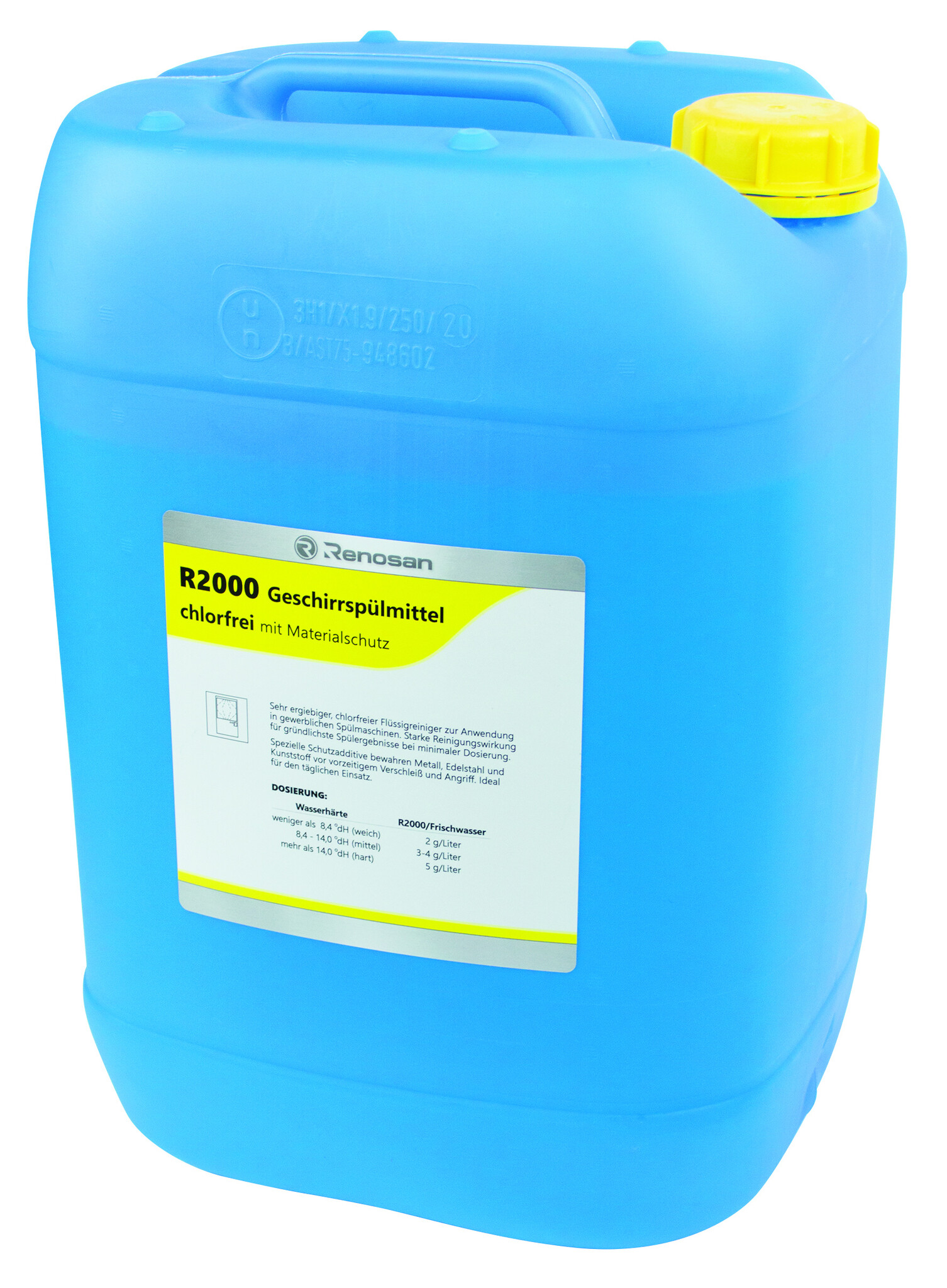 Chlorfreier Flüssigreiniger zur Anwendung in gewerblichen Spülmaschinen.